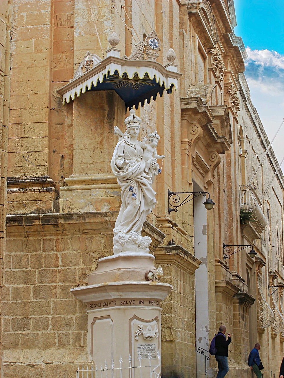 Beautiful statue and shrine on the corner of two streets in Mdina, Malta.